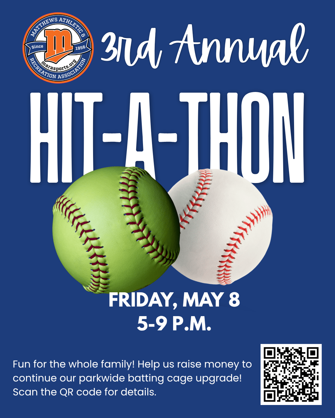 The Hit-A-Thon is much like a fun run at school. Each player will receive 10 pitches. Friends and families can pledge a certain amount for each pitch that is hit, or donate a flat amount. With approximately 900 baseball and softball players at MARA this spring, if every player raised $50, the Hit-A-Thon could provide $45,000!