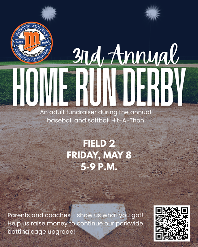 Cheer your player on during the Hit-A-Thon! It will be a fun evening for the kids and families. The Hit-A-Thon will be held on Friday May 8th beginning at 5:00pm am at MARA. It will be a fun night with food and other activities for the entire family.